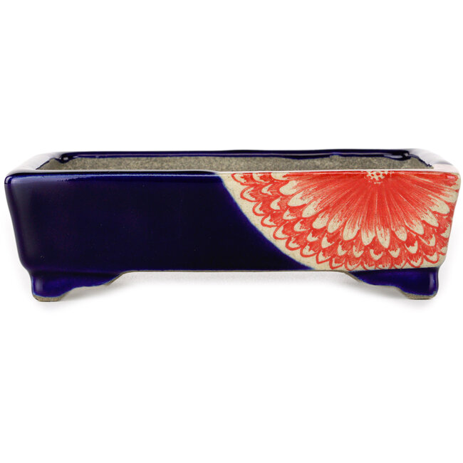 150 x 108 x 43 mm | Hersteller: Terahata Satomi Mazan | Herkunft: Tokoname, Japan | Merkmale: Rechteckiger, handgefertigter Bonsai-Topf in Rot und Blau