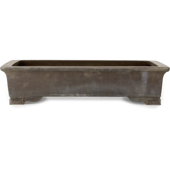 508 x 365 x 118 mm | Hersteller: Unbekannt | Herkunft: Japan | Merkmale: Rechteckiger, handgefertigter, unglasierter Bonsai-Topf mit einer kleinen Absplitterung am Fuß und am Rand.