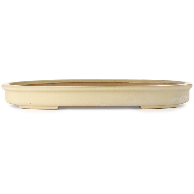 Ovaler, cremefarbener Bonsai-Topf von Seizan (Reihou, Kataoka Katsushi, Meister Seizan-Ofen) – 577 x 408 x 65 mm