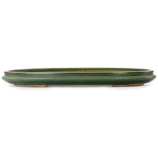 Ovaler grüner Bonsaitopf von Terahata Satomi Mazan – 485 x 335 x 43 mm