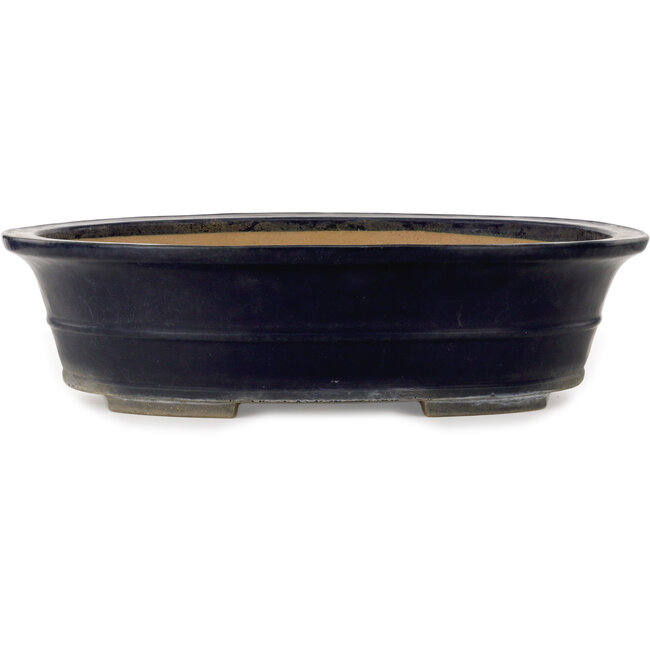 Ovaler, handgefertigter, dunkelblauer Topf mit einer kleinen Absplitterung von etwa 30 cm