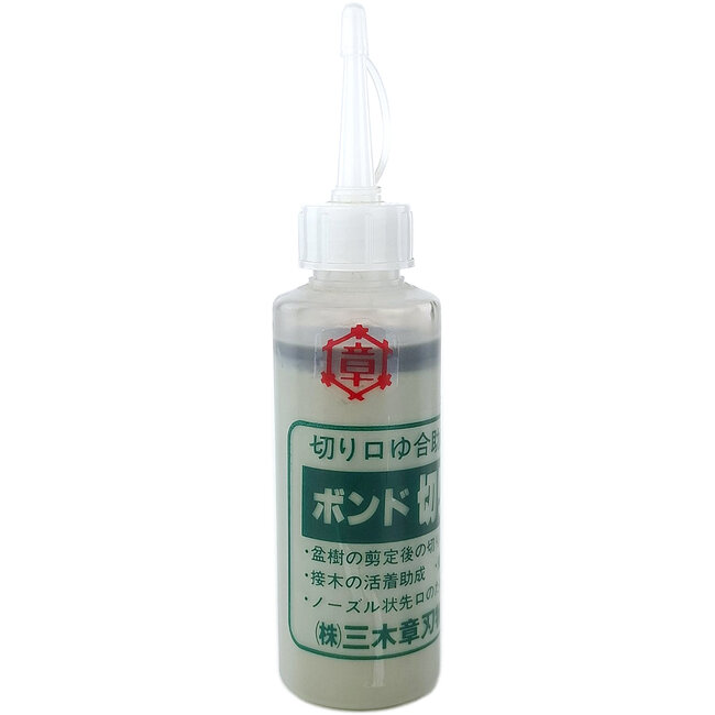 Bond Kirikuchi Naoru Wundpaste mit Applikator ist eine japanische , flüssige Wundpaste für Schnittwunden und Veredelungsstellen bei Bonsai . Sie wird nach dem Schnitt aufgetragen, um die freiliegenden Schnittflächen zu schützen und dient auch der Unterstützung von Veredelungsarbeiten. Japanische Verkäufer beschreiben sie speziell als Heilmittel für Schnittflächen an Bonsai.