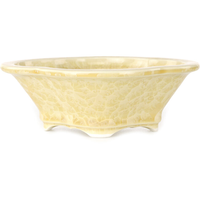 155 x 140 x 50 mm | Maker: Heian Senzan | Origin: Tokoname, Japan | Characteristics: Mokko handmade off-white, crystal glaze bonsai pot Read more.