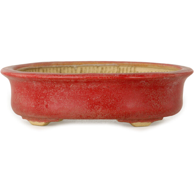 Oval red bonsai pot by Horie Bikoh - 114 x 100 x 33 mm