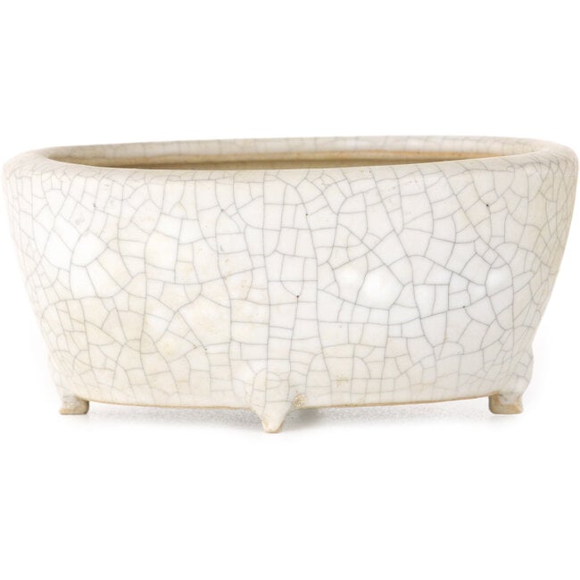92 x 72 x 42 mm | Maker: Eime Yozan | Origin: Tokoname, Japan | Characteristics: Oval handmade white craquelé bonsai pot Read more.
