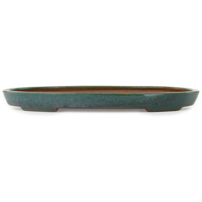 Oval teal bonsai pot by Seizan (Reihou, Kataoka Katsushi, master Seizan kiln) - 400 x 270 x 35 mm