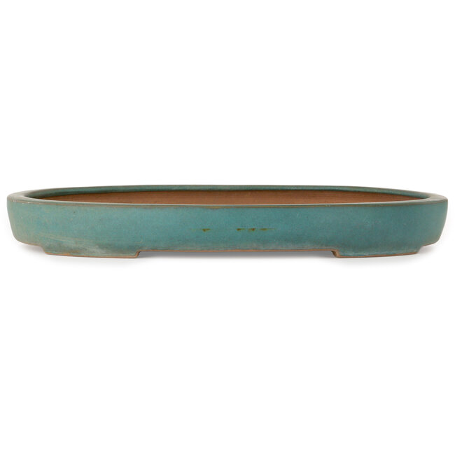 Oval green bonsai pot by Seizan (Reihou, Kataoka Katsushi, master Seizan kiln) - 565 x 420 x 65 mm