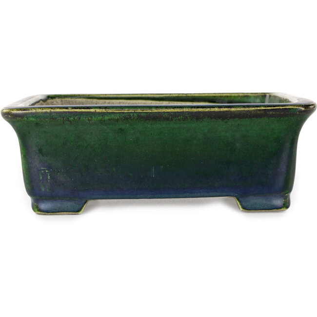 198 x 170 x 67 mm | Fabricante: Mazan | Origen: Tokoname, Japón | Características: Maceta rectangular verde para bonsái, hecha a mano Leer más.