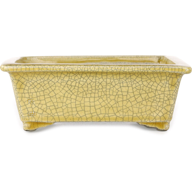 Evalúa Satomi Mazan, Mazan Terahata Maceta rectangular para bonsái craquelé amarilla de Mazan - 203 x 173 x 70 mm