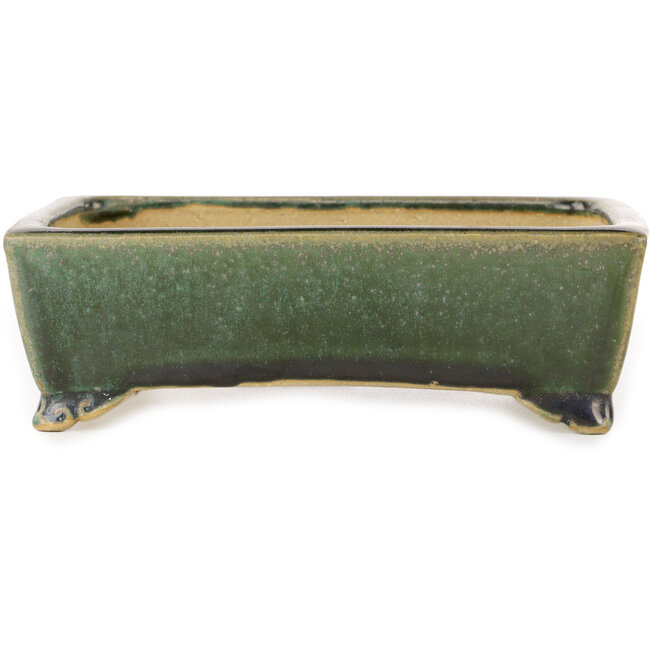 158 x 116 x 49 mm | Fabricante: Shibakatsu | Origen: Tokoname, Japón | Características: Maceta rectangular para bonsái verde oscuro, hecha a mano