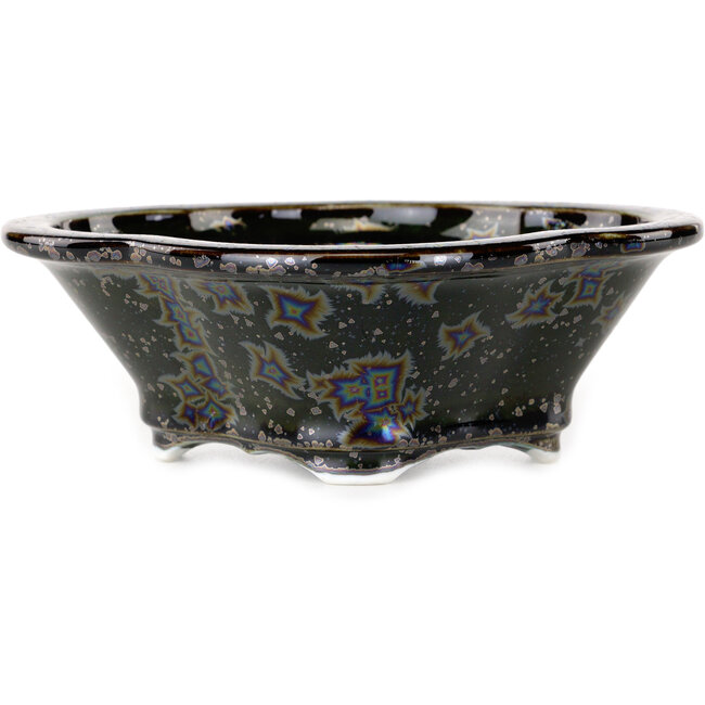 Maceta para bonsái Mokko de color marrón oscuro metalizado con esmaltado de cristal de Heian Senzan - 155 x 140 x 50 mm