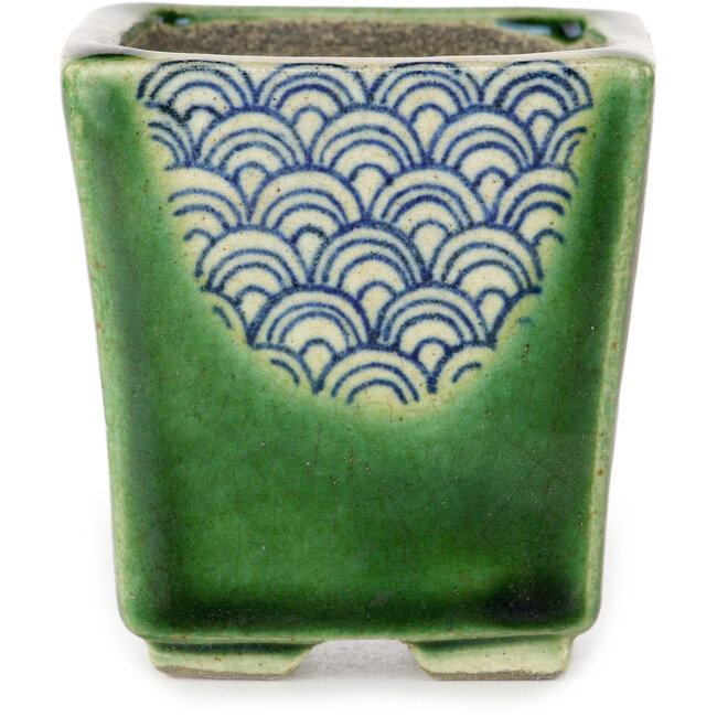 63x63x68mm | Creador: Terahata Satomi Mazan | Origen: Tokoname, Japón | Características: Maceta cuadrada para bonsái verde hecha a mano por Terahata y Satomi Mazan Leer más.