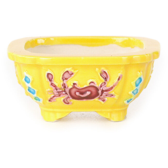 48 x 48 x 20 mm | Fabricante: Tou Ai | Origen: Kioto, Japón | Características: Maceta cuadrada para bonsái hecha a mano en tonos morados, azules y blancos.