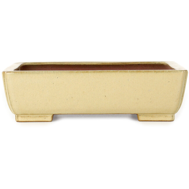 Maceta rectangular de color blanco roto hecha a mano