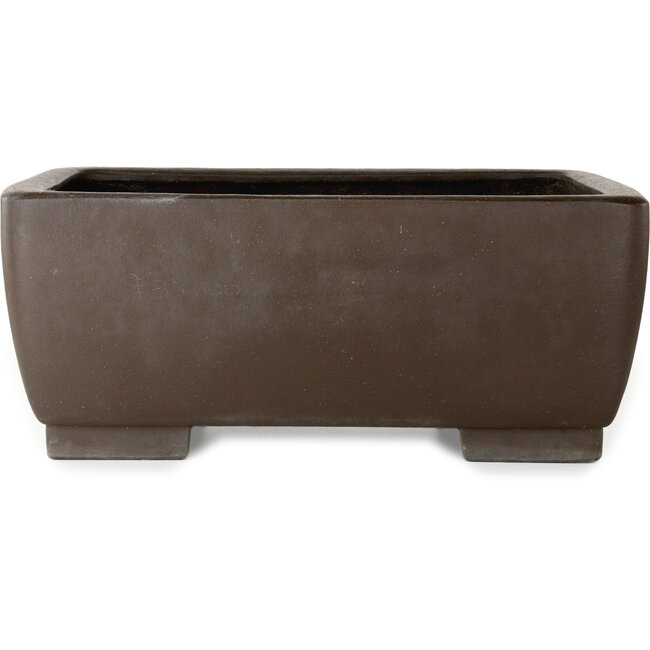 555 x 407 x 227 mm | Fabricante: Keizan | Origen: Tokoname, Japón | Características: Maceta rectangular para bonsái sin esmaltar, hecha a mano, con dos astillas en las patas.