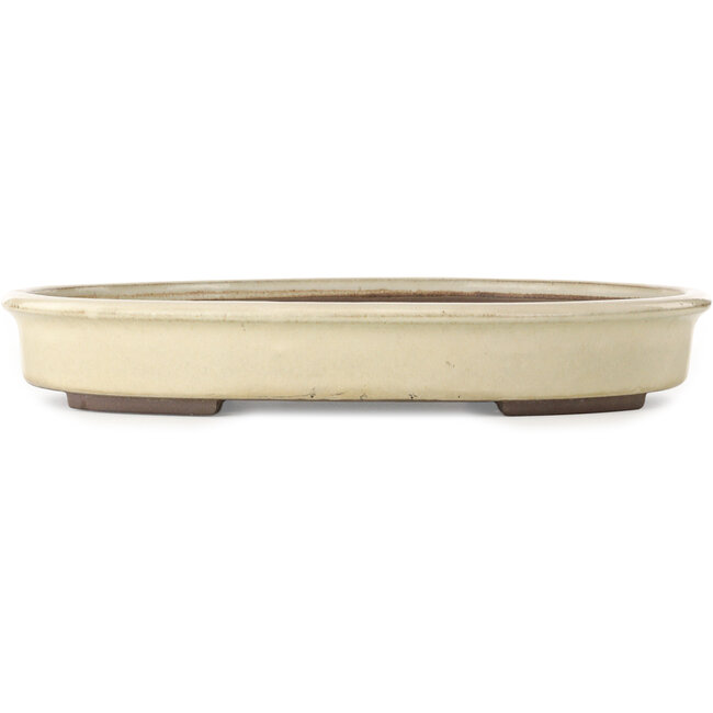 Maceta ovalada de bonsái en color blanco roto de Yamaaki Toshio (tercera generación) - 465 x 363 x 70 mm