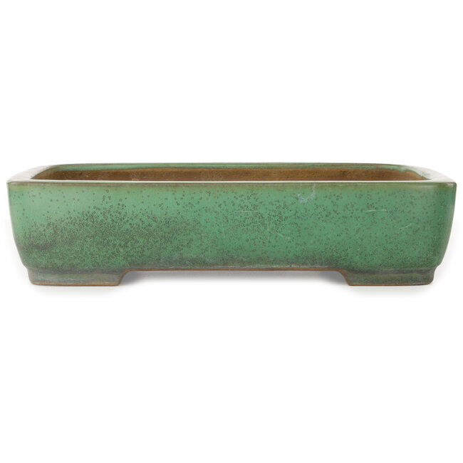 415 x 305 x 90 mm | Fabricante: Yamafusa | Origen: Tokoname, Japón | Características: Maceta rectangular verde para bonsái, hecha a mano Leer más.