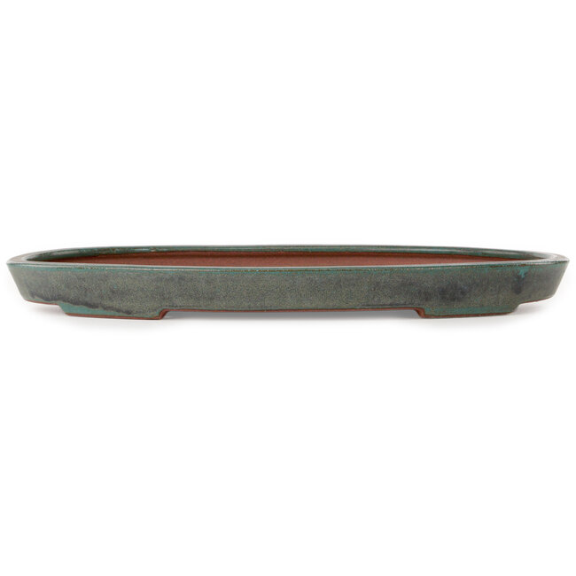 Maceta ovalada para bonsái verde azulado de Seizan (Reihou, Kataoka Katsushi, maestro del horno Seizan) - 400 x 270 x 35 mm