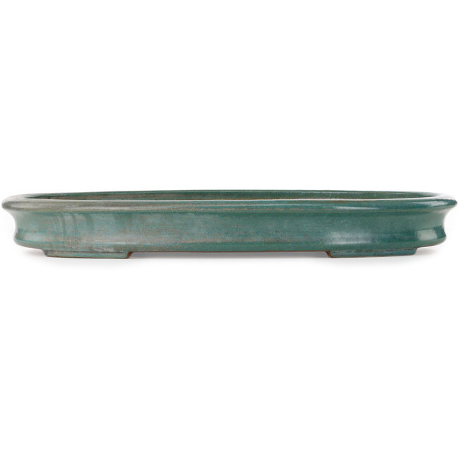 Maceta ovalada para bonsái verde azulado de Seizan (Reihou, Kataoka Katsushi, maestro del horno Seizan) - 510 x 365 x 55 mm