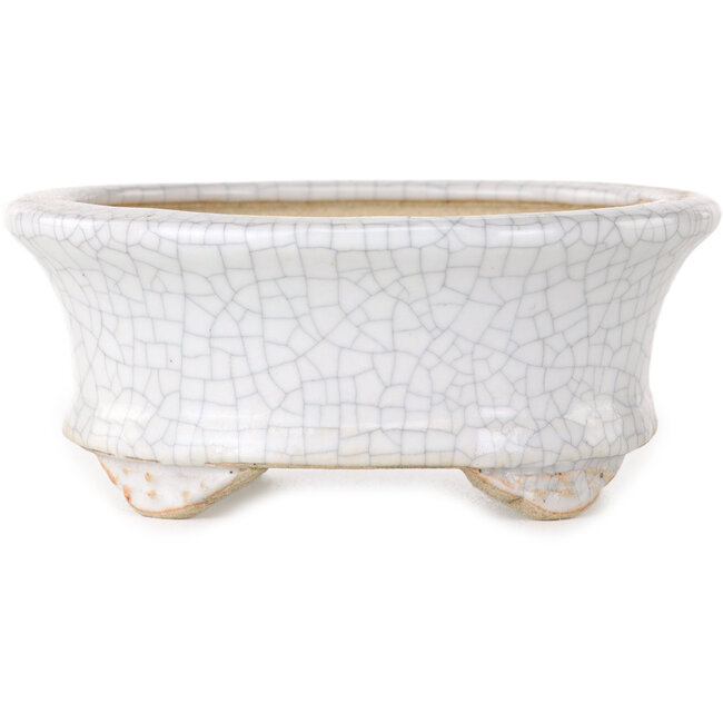 Pot à bonsaï ovale craquelé blanc par Eime Yozan - 92 x 79 x 40 mm