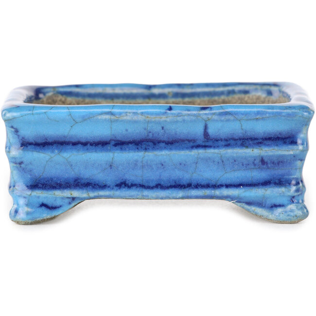 Pot à bonsaï rectangulaire bleu par Terahata Satomi Mazan - 72 x 50 x 27 mm
