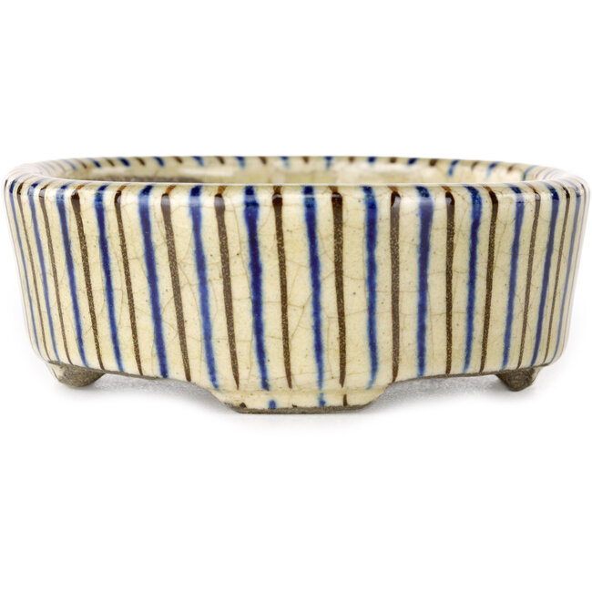 Évaluer Satomi Mazan, Mazan Terahata Oval beige craquelé, blue and brown, multicolor bonsai pot by Terahata Satomi Mazan - 80 x 80 x 30 mm