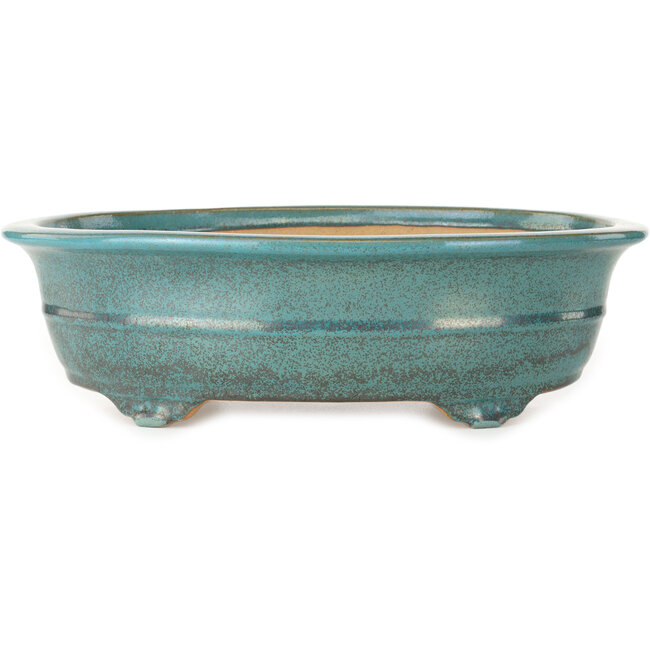 353x270x105mm | Fabricant : Seizan (Reihou, Kataoka Katsushi, maître du four Seizan) | Origine : Tokoname, Japon | Caractéristiques : Pot à bonsaï vert ovale fait main