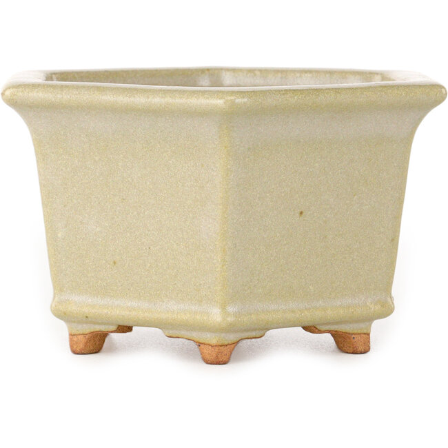 Pot à bonsaï hexagonal blanc cassé de Hattori - 128 x 128 x 70 mm