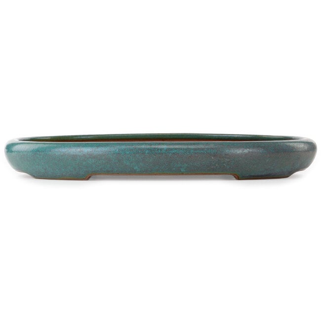Évaluer Seizan (Reihou, Kataoka Katsushi, master Seizan kiln) Pot à bonsaï ovale bleu sarcelle par Seizan (Reihou, Kataoka Katsushi, maître four Seizan) - 480 x 355 x 57 mm