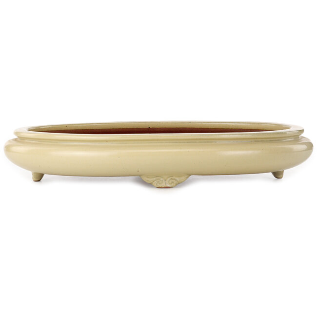 Pot à bonsaï ovale beige par Seizan (Reihou, Kataoka Katsushi, maître four Seizan) - 520 x 355 x 90 mm