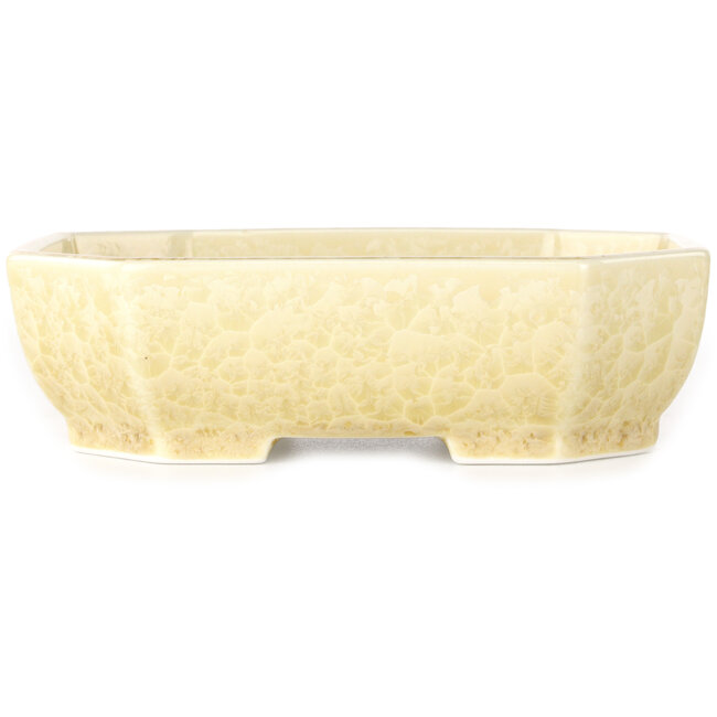 Vaso bonsai ovale bianco sporco, smaltato in cristallo di Heian Senzan - 161 x 132 x 50 mm