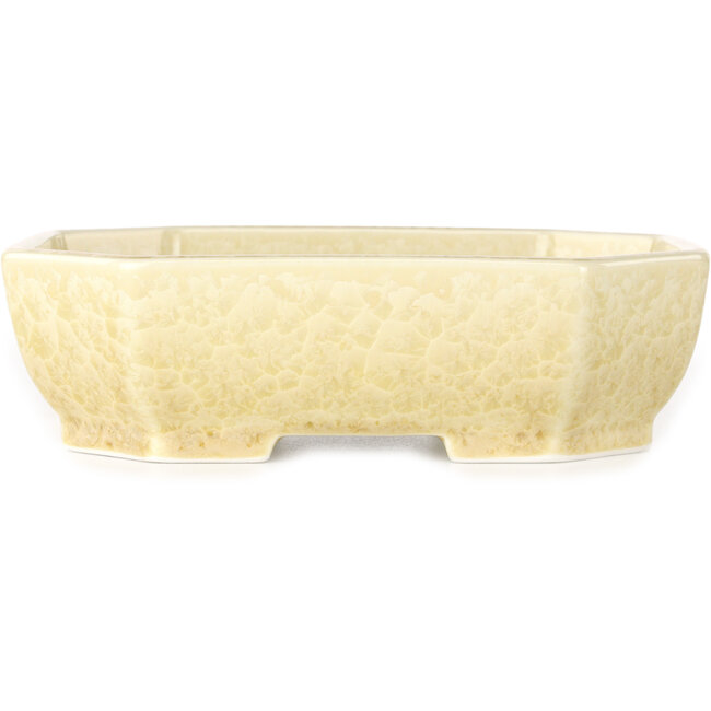 Vaso bonsai ovale bianco sporco, smaltato in cristallo di Heian Senzan - 161 x 132 x 50 mm