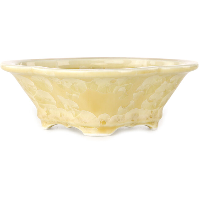 Vaso per bonsai Mokko bianco sporco, smaltato in cristallo di Heian Senzan - 170 x 160 x 58 mm
