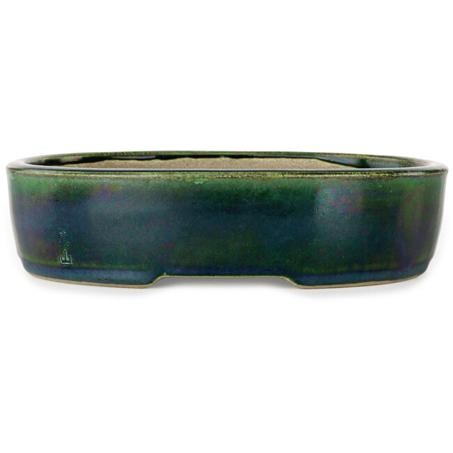 222 x 175 x 52 mm| Autore: Terahata Satomi Mazan | Origine: Tokoname, Giappone | Caratteristiche: Vaso bonsai verde ovale fatto a mano realizzato da Terahata Mazan