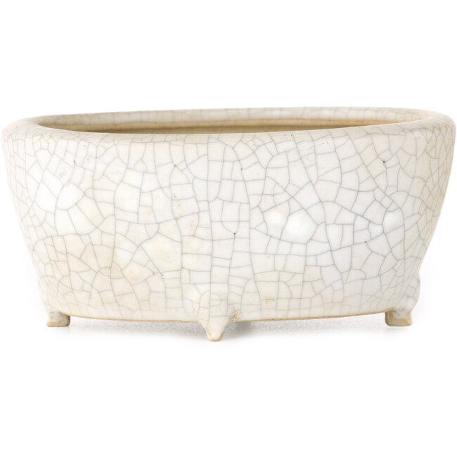 92 x 72 x 42 mm | Produttore: Eime Yozan | Origine: Tokoname, Giappone | Caratteristiche: Vaso bonsai ovale craquelé bianco fatto a mano