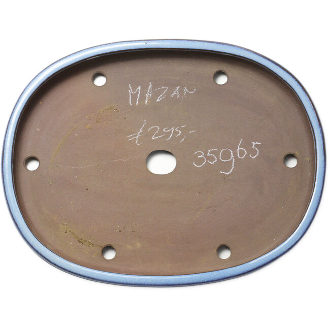 475 x 365 x 55 mm | Produttore: Terahata Satomi Mazan | Origine: Tokoname, Giappone | Caratteristiche: Vaso bonsai ovale blu fatto a mano