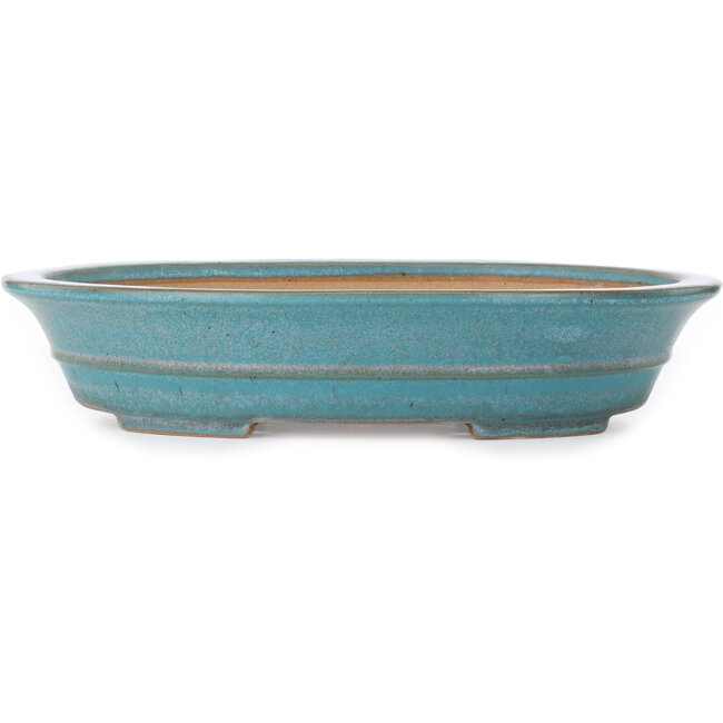 Vaso bonsai ovale turchese di Seizan (Reihou, Kataoka Katsushi, forno del maestro Seizan) - 420 x 320 x 85 mm