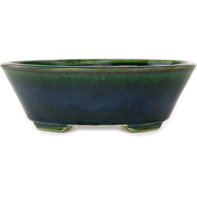 230 x 200 x 75 mm | Maker: Mazan | Herkomst: Tokoname, Japan | Kenmerken: Ovale handgemaakte groene bonsaipot Lees meer.