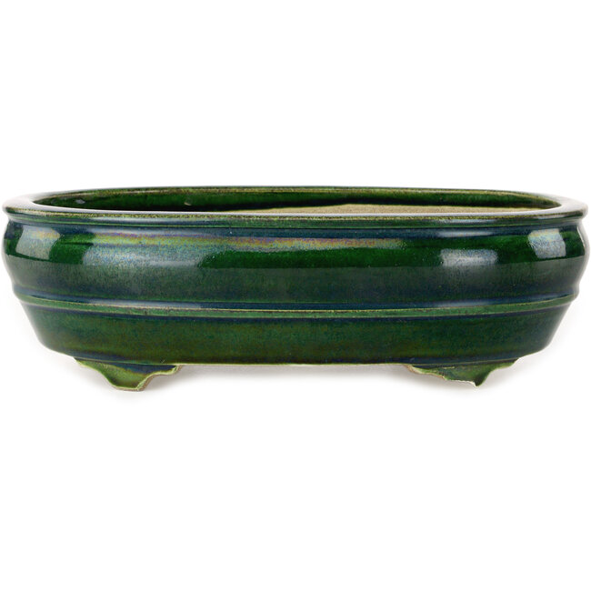 Ovale groene bonsaipot van Terahata Satomi Mazan - 290 x 213 x 85 mm