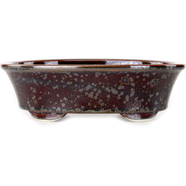 Ovale bruine bonsaipot met metallic kristalglazuur van Heian Senzan - 180 x 143 x 53 mm