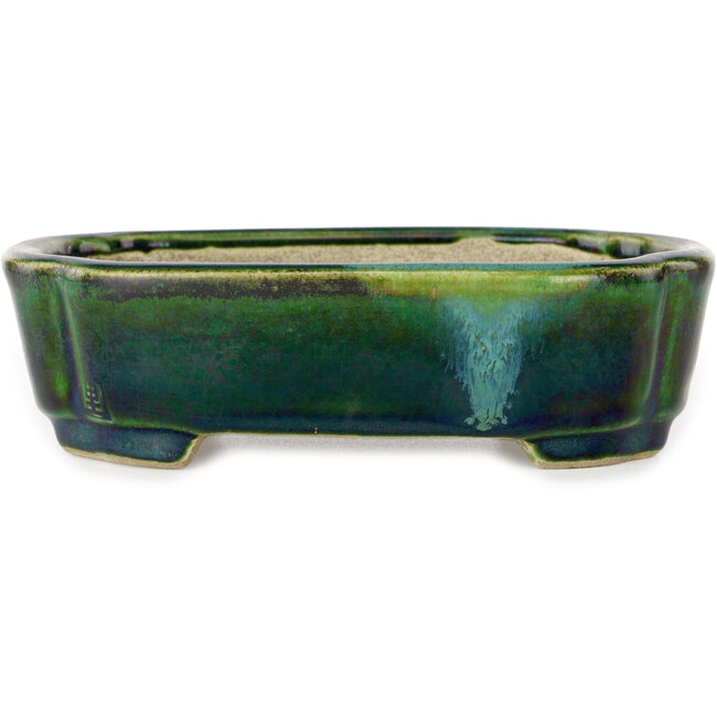 Mokko groen met blauw accent bonsaipot van Terahata Satomi Mazan - 160 x 120 x 45 mm