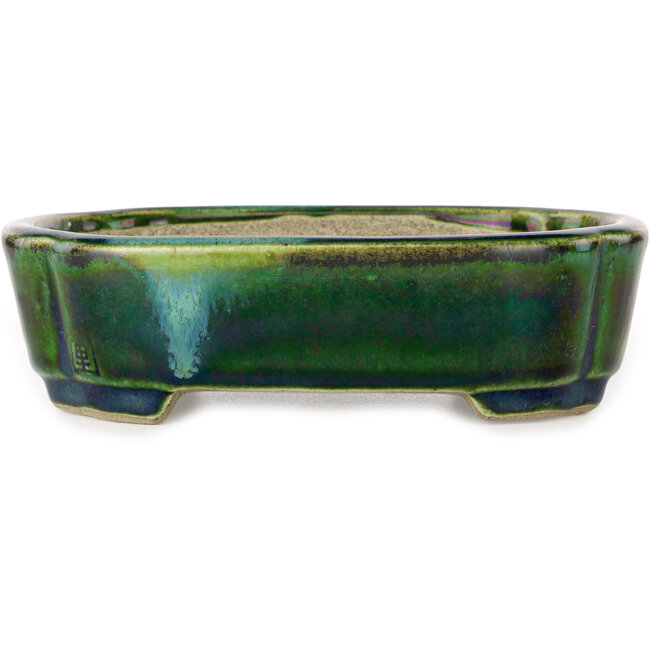 Mokko groen met blauw accent bonsaipot van Terahata Satomi Mazan - 160 x 120 x 45 mm