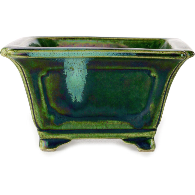 Vierkant groen met blauw accent bonsaipot van Terahata Satomi Mazan - 126 x 126 x 72 mm