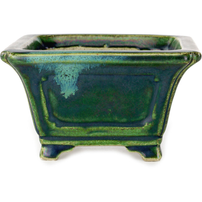 Vierkant groen met blauw accent bonsaipot van Terahata Satomi Mazan - 126 x 126 x 72 mm