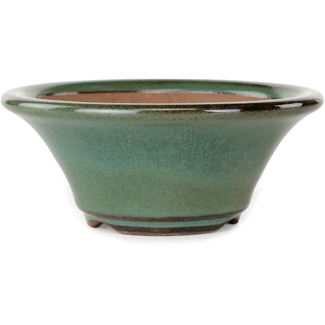 Ronde groene bonsaipot van Koishiwara - 127 x 127 x 55 mm