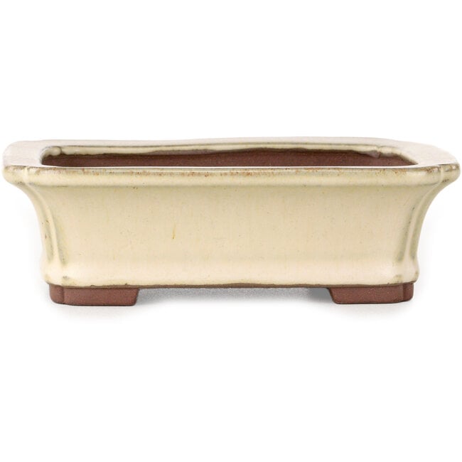 Rechthoekige, gebroken witte bonsaipot van Yamaaki - 155 x 123 x 47 mm
