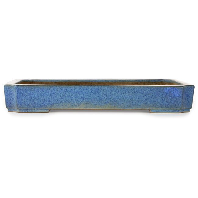 Rechthoekige blauwe bonsaipot van Seizan (Reihou, Kataoka Katsushi, meester Seizan oven) - 477 x 330 x 65 mm