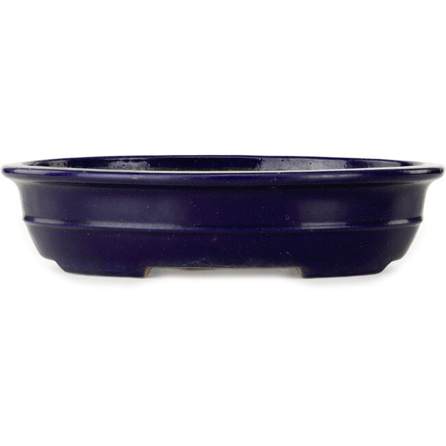Ovale donkerblauwe bonsaipot van Seizan (Reihou, Kataoka Katsushi, meester Seizan oven) - 385 x 292 x 95 mm