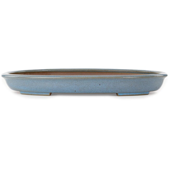 Ovale blauwe bonsaipot van Seizan (Reihou, Kataoka Katsushi, meester Seizan oven) - 453 x 325 x 52 mm