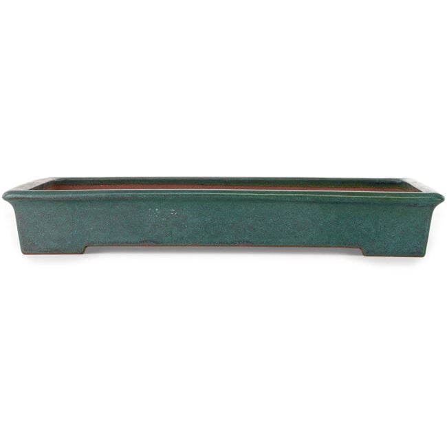 Rechthoekige blauwgroen bonsaipot van Seizan (Reihou, Kataoka Katsushi, meester Seizan oven) - 460 x 315 x 65 mm